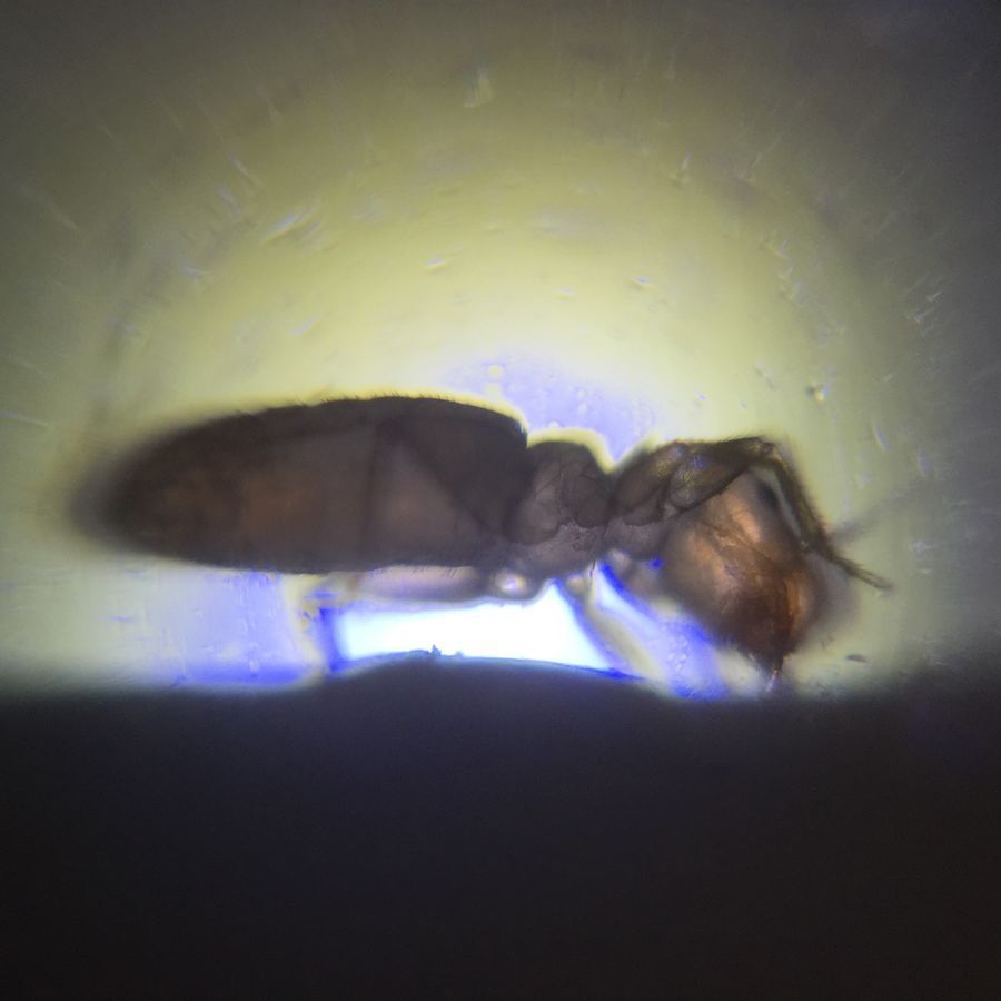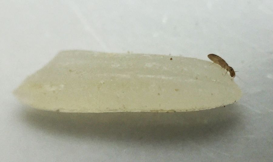 The “thing” was so small I couldn’t tell what it was. It turned out these bugs were booklice from the Liposcelis genus. Many species of Liposcelis are associated with human habitation and several are well known as pests of stored products –mostly grains. I kept my infested rice bag so I’ll try to obtain better images of these tiny creatures later on. In the meantime, I’ll leave you with a short clip I made from the Liposcelis sp.