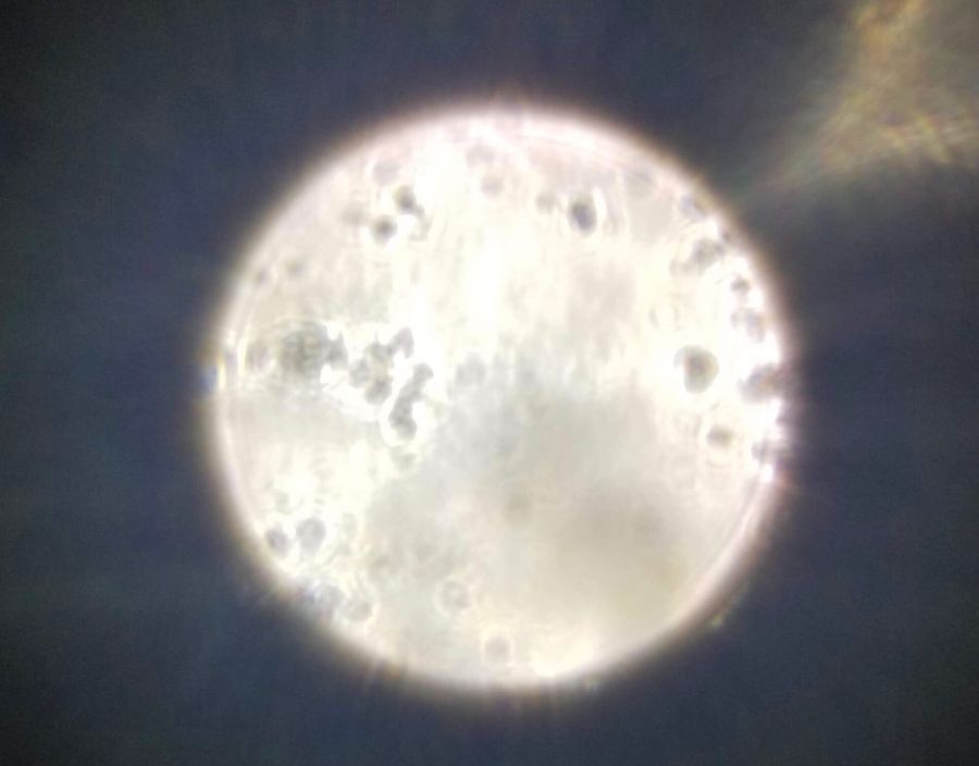 Image of pond scum taken at 6:50pm on 4/8/19 at the BBB Lily Pad Pond at Caltech by sticking a falcon tube into the pond. Some questions about this photograph are what the specimens in the photograph are and what the scale of their sizes are. On identifying the specimens a more zoomed in and stable photograph could help and as for scale a reference object should be placed on the slide in view of the lens. #caltechbi1
