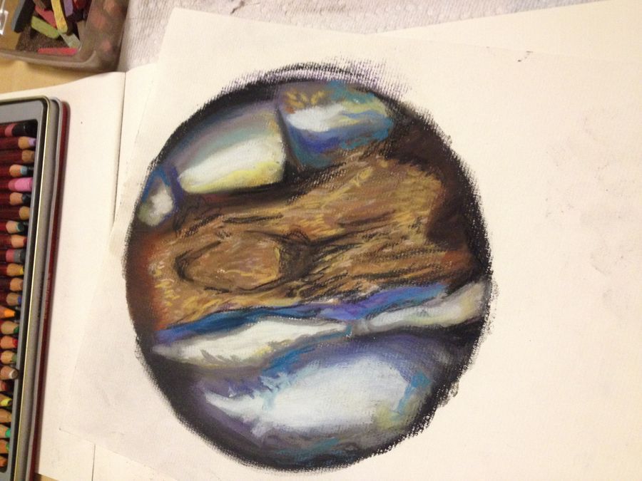 In my Senior Exhibition at Northern Michigan University I plan to explore my own health and wellness through the use of Foldscopes. I will be taking tissue samples from my own body, creating slides, and photographing the images using my iPhone. So far I have created slides using, bear with me here, hair follicles, saliva, boogers/snot/mucus (whatever you want to call it – it came from my nose), and dead skin from the surface of my cheek. Further explorations will include other bodily excretions and surfaces – currently I am experimenting visually with a small selection of photographs from my slides. The next exploration of these images will be through pastel drawings with a tentative layering component (text or additional images that inform the viewer further). I am still working on how to display the final pieces – they will remain in the round format by which I view the original source images.
