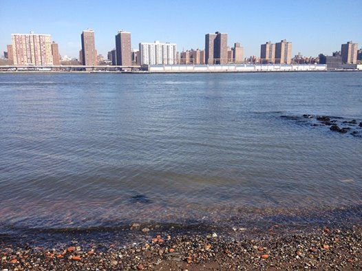 It’s not the most beautiful beach in the world, but it is home to my favorite tidal pool down in DUMBO . In what might have been a fairly ill advised move, I waited until low tide, kicked off my shoes, and waded out into the frigid water to see if the barnacles I left were still there. I couldn’t find them, and the water was too deep to search, my feet too numb from cold to safely keep walking around. I nabbed some seaweed in a container and turned back to find a group of students and their teacher watching me from shore. “What’re you doing? Gathering seaweed,” the teacher asked me, that strange fellow they’d found wading in the East River in March.I told her I was gathering the seaweed to catch the things living in the seaweed. “But I don’t think anything much is on there now. The water’s too cold.” Boy was I wrong. It never ceases to amaze me how an apparently calm jar of water can come to life on a second observation. As I sat by the water reading and editing some of my writing, I kept coming back to look at the fucus seaweed floating in my jars, and each time noticed someone new darting around in it. The first I noticed was a copepod swimming around in the floating fronds of the weed.