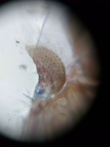 We got the hermit crab while collecting shell and it was dead so we decided to dissect and observe the body parts under foldscope. This is some part from abdominal region where we observed this beautiful arrangement of arteries caring red blood and below we observed a patch of blue blood also