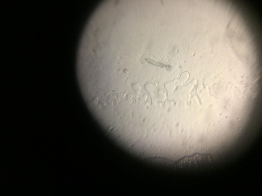 This is a photo of an organism found in a sample from the turtle pond. It was taken in Bio rec at 8:50 pm on 4/09/19. This photo was taken using an iPhone and a foldscope held up to the light. One question I have about the image is the sparseness of the organisms seen, despite the clearly populated water source. I believe this could be due to an unclean slide or dirt on the lens itself, despite efforts to clean using the provided q-tip. These layers of would obscure smaller organisms, since the lens is not very strong. It is also possible that the method used to put the cover slide on pushed most organism out from underneath, resulting in a minimally populated sample. #caltechbi1