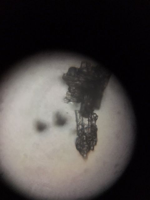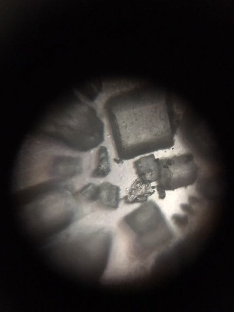 Sugar I decided to ask a rather qualitative question: what do different types of crystalline materials look like? How do their crystal shapes and patterns differ? To answer this question, I looked at very small amounts of table salt, splenda, raw crystalized honey, and fine sugar under the foldscope. Here are pictures of my findings in that order! From these pictures, I can conclude that although different shaped crystals, both salt and sugar have very geometric and organized crystals, with sugar having especially square ones. We can also see recurring crystalline patterns within the raw honey, although they do seem to be less structured and individual and more melded together. Splenda seems to have an altogether different pattern, if it has any, and is more irregular. Some questions this leaves me with include: why do these materials’ structures differ? Could this contribute to their differences in taste, texture, and solubility/chemical properties?