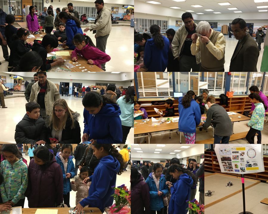 On the 25th of February, the Robert Frost Middle School in Rockville MD hosted a STEM night. As two of the micronauts are students in the same school, we decided to put up a Foldscope table for the occasion. We had a sample preparation section where a visitor could prepare his/her own sample and a viewing section where they could view or photograph their foldscope images. We also had several permanent prepared slides that a visitor could use for foldscoping. It was great to see the micronauts in action. The visitors were mostly children and their parents. We estimate ~50 visitors. Many of the visitors were impressed and wanted Foldscopes for themselves.