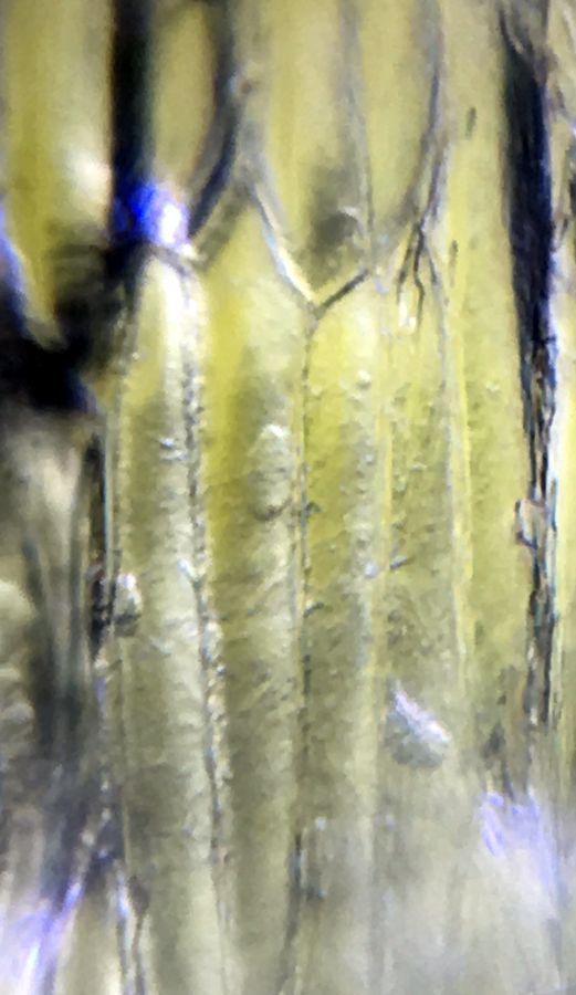 Onion epidermis A few observations for the future. 1. In future presentations, it would be great to have a projection on a screen of the foldscope images. Digital image projections seem to only work for iPhones. Any idea how we could do it with an android phone? 2. The poster was really useful and many people took pictures to get contact information. It might help to have contact information cards. 3. It might help to have different types of foldscopes: Bright field, Dark field, projection, and reflection and possibly a couple of magnifications, each showing a different sample. A short video of the night follows.