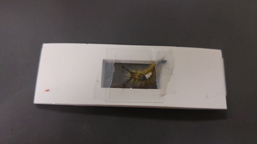 Currently at Stanford, it’s literally raining caterpillars. Apparently, once every few years, there are population booms of Western Tussock Moth larvae http://bgm.stanford.edu/groups/grounds/ipm/tussock . If you’re in the wrong spot, you’ll end up covered in these guys as they fall from the trees. Of course, I couldn’t wait to put one of these guys under a Foldscope, so I caught one of them. As you can see, this little guy was perfectly content walking on the rim of a paper cup. Really, I left it there for about 2 hours and it did just that the whole time. As a Foldscope specimen, these guys are a bit large, so I had to think about how to tackle this challenge.
