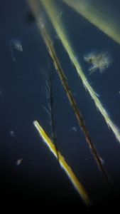 Not only did the true color of these hairs become observable, it became obvious that the different colored hairs were structurally distinct from each other. I wonder if these differences serve a purpose, and how they correlate to the locations of these hairs on the caterpillar’s body. The most rewarding part of this experiment was that the caterpillar was unharmed. I was able to remove it from the slide and send it on its merry way. Perhaps I should have read up on this particular caterpillar before setting it free, however. I didn’t realize that it’s actually a pest to the point that there are efforts to actively control their populations. I guess my first hint should have been how unnatural it is for it to be raining caterpillars.