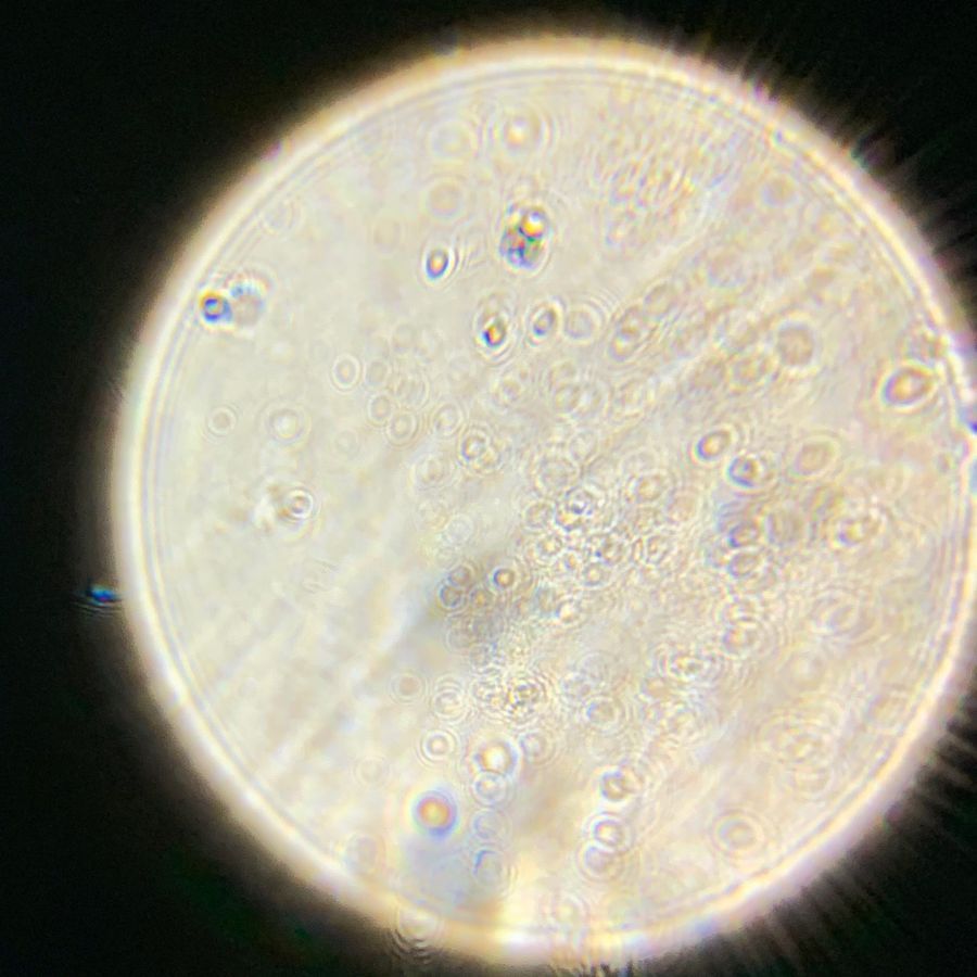 Time: 3:37PM, 5/3/19. Place: BBB Jasmine pollen concentrated in the center. They are differently sized and clearish-yellow