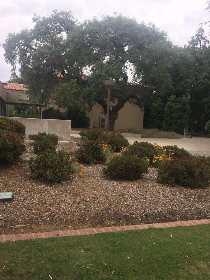 Location of California Poppy (orange flowers in the image) was in CALTECH’s campus on the north side of the east end of the Olive Walk (Pasadena, CA)