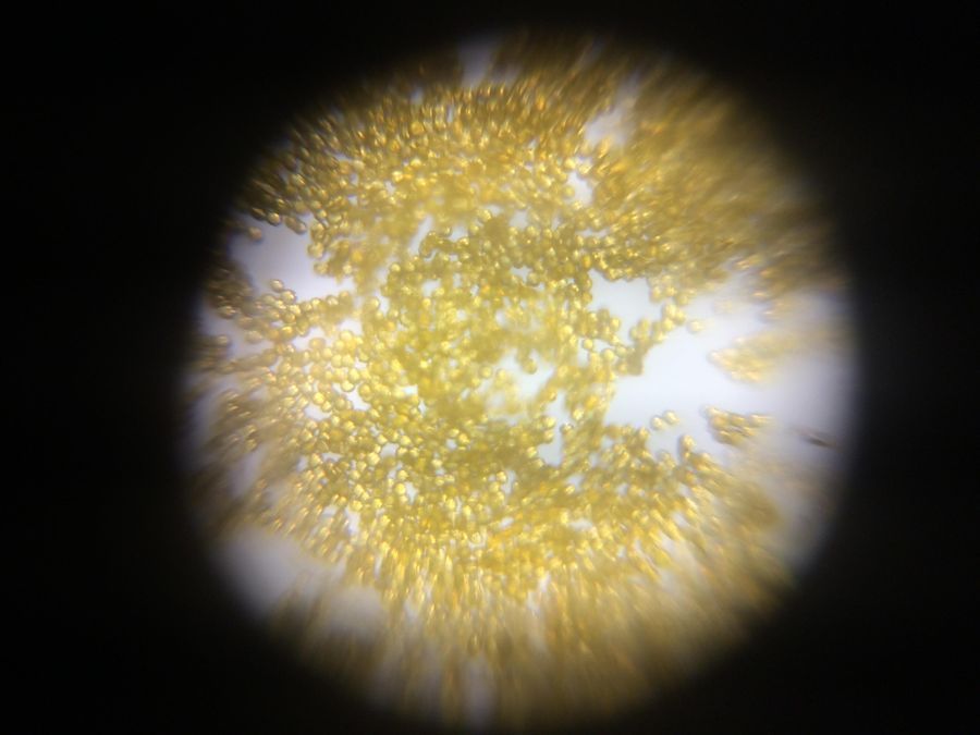 Foldscope image with direct light source of a pollen sample from the Eschscholzia californica (California Poppy)