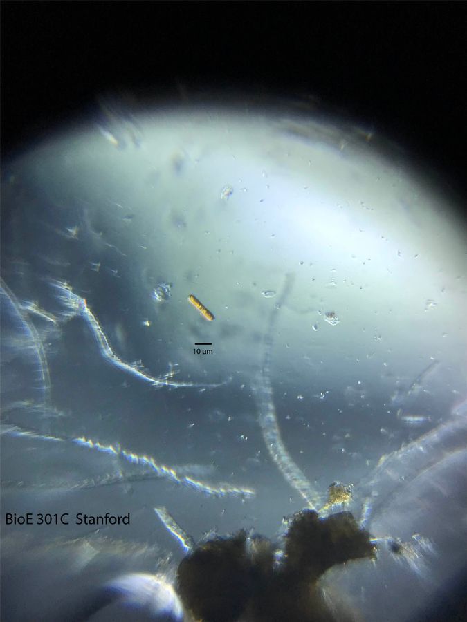 I took a drop of water from the fountain in front of the Green Library and observed it under the foldscope with dark filed. The dark filed image was by adding another lens between the light and the sample. Surprisingly I found this golden creature which may be a unicellular organism due to its size.