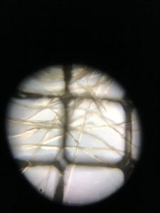 We looked at the filter of a cigarette. It was pretty interesting seeing the fibers in it and thinking about how the tightly woven network is what’s preventing the harmful substances from passing through. We used a grid overlay in the imaging to have a scale bar directly on the image. The grid is a 0.5mm grid, to give the scale of the fibers. #BioE301C