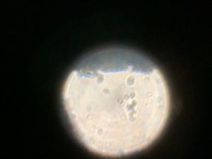 The sample was collected on May 10, 2019 8:30 pm at a White Mountain Research Center in Bishop, California. The plant species is Taraxacum erythrospermum , more commonly known as the red-seeded dandelion. In the first image, two of these red-seeded dandelions are pictured. The pollen sample was collected by rubbing the pollen onto a glass slide. The second image below was captured using a foldscope and depicts small grains of the pollen. #caltechbi1