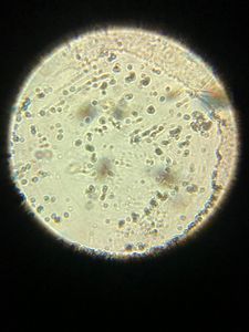 Above is an image of yellow, translucent, rice grain-shaped pollen grains that came from the orangish purplish flower pictured to the right. It’s pretty amazing how definite the pollen grains are shaped, as with the naked eye it simply just looks like fine powder. This sample of pollen was taken from the flower in the picture on May 9, 2019 at 9:00 pm (not ideal time for flower hunting, but it happened), on a patch of flowers at the side of the Broad Center for the Biological Sciences at California Institute of Technology. I happened to be walking out of my recitation section this Bi 1 class and the moment I walked out of the building, I spotted a few rather large looking flowers on a mostly sparse patch (haha) that held promise for nice pollen samples (specifically the one in the picture above). As expected, at the center of the flower, there were pronounced stamen with anthers that were covered with pollen. So I actually plucked an entire stamen out (I don’t actually know if this is a good idea, but I wanted to bring the sample back to a room with a bright light). After observing the pollen for a bit and the picture of the flower itself, I went on an Internet hunt to see what this flower could possibly be. It did strongly resemble a lily, so I started with that. Turns out there are so many different types of lilies…so many…but if you start to observe characteristic features of lilies (which I did in this site ), these lilies resembled ones from the division of Asiatic hybrids, where the stamen aren’t too pronounced and the flower generally seems to look proportioned with the petals not bending back completely. Further research and scrolling through pictures of lilies eventually landed me observing different types of orange lilies, since this flower was orangish with slight purple/red tones. Eventually I came to the conclusion that this flower, characterized by its yellow pollen, small stamen/anthers, and predominantly orange color is an orange daylily, or Hemerocallis fulva . Apparently this flower is NOT a true lily but gets its name from its resemblance to lilies, since it is not in the genus Lilium. They are native to Asia and grow well in temperate climates. Although in my opinion there was probably some sort of cross breeding of other flowers involved because my flower above seems to carry darker colors (or maybe that was just the time of day). #caltechbi1