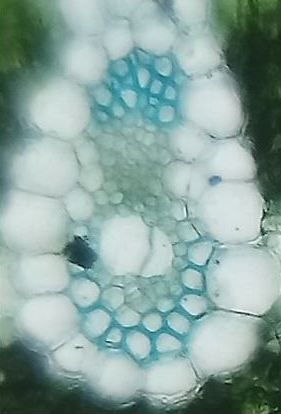 T.S. of root of Eichhornia crassipes stained with methylene blue.
