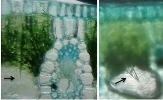 Presence of sclereids in the petiole of E. crassipes – Stained with Tryphan blue
