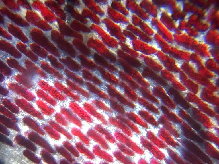 The light pink flower petal in greater clarity! And below, pollen grains were starkly visible with Foldscope, which I found to be incredibly enrapturing.