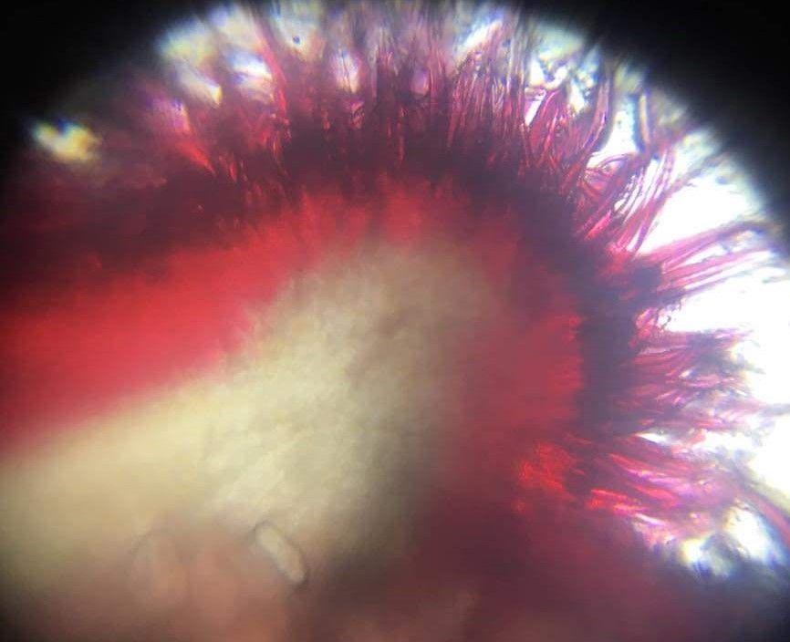 Every day as I walk out of my residence here in Cape Town, I pass by this brilliant hibiscus flowering tree. Oftentimes I’ll snatch a flower down just to add some natural color to my room, and I was so wowed by the different parts of it I saw under my Foldscope: