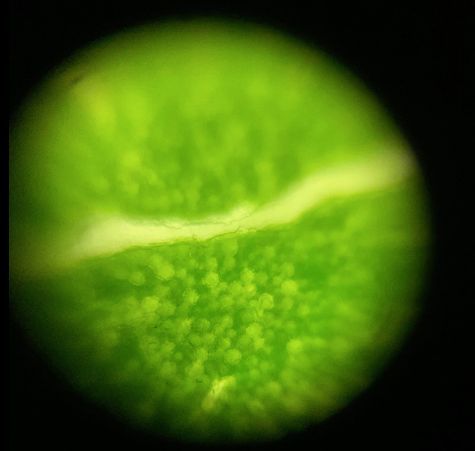 On Tuesday, May 28 at around 3pm, leaves were taken from Avery House’s inner courtyard at Caltech. The leaves were carefully removed from the shrubs and an individual leaf was placed on the foldscope slide. A bright light was required to obtain the image below, as the leaves were thicker than typical foldscope samples. In the foldscope image, small, circular objects represent the individual stomata within the leaf.