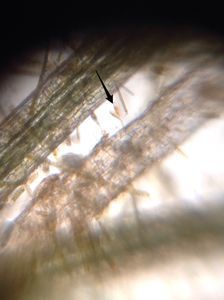 Whenever my duties allow me, I run and grab my foldscope and inmensely enjoy watching the microcosmos under it. Refering to this plant (it is frequently mistaken as an algae), I have recently read that duckweed ( Lemna spp ) absorbs water and nutrients mostly through the lower surface of the leaves, not the roots. The only root they exhibit per leaf slows the plant’s movement in a windy day or in turbulent waters because roots entangle easily. This fact is clear in the photograph above. The more I watch under the foldscope, the more I firmly believe every living creature, no matter its size, is an exhibition of wonders. I will explain myself. When observing Lemna’s root, I realized not only sessile rotifers attached to it, but some other epiphytic organisms (living more or less permanently on top of) which I could not recognise. Take a look.