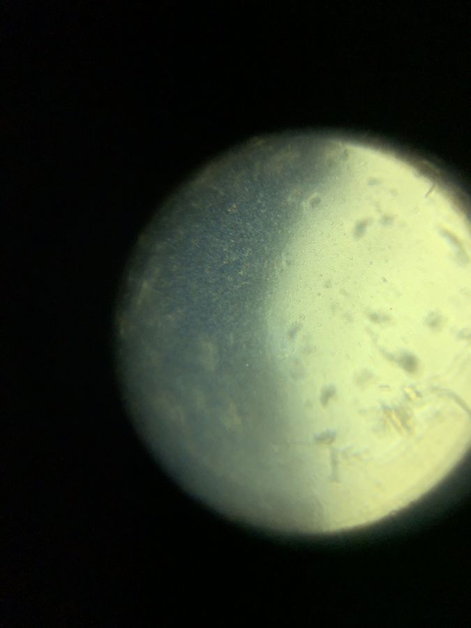 Nectar from flower (purple acacia) Ricketts courtyard, 2:30 pm In this image we see some cells from the nectar of this purple flower. The cells are spread out and were moving throuhgout the photo.