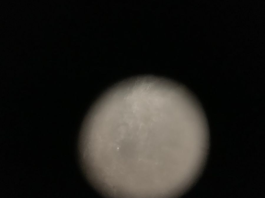 Here is an image of the white flower petal from the same white hibiscus flower taken from above. This was obtained from the same location at the same time as the white hibiscus flower obtained above. This image was obtained by removing the white hibiscus flower from the plant, tearing a portion of the petal using fingers, securing the petal under a lens cover on a fresh slide using tape, and then photographed using an iPhone XR using a foldoscope.