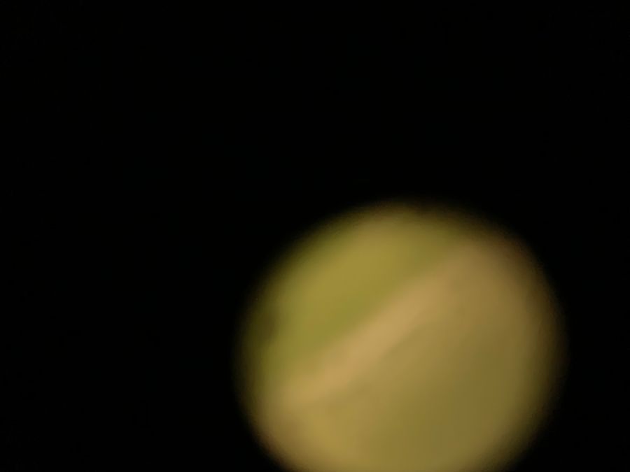 Here is an image captured from a foldoscope of the small, yellow, oval pollen particulates from the stamen sample from White Hibiscus flowers. This was obtained by removing the flower of a white hibiscus plant outside of JCAP (Joint Center for Artificial Synthesis) at Caltech (91126-0001 Pasadena, CA) on 7:26 PM on 5/31/2019, and then its stamen were removed by pulling them from the flower, and they were crushed and placed under the lens cover on the slide. They were then photographed using an iPhone XR using a foldoscope.