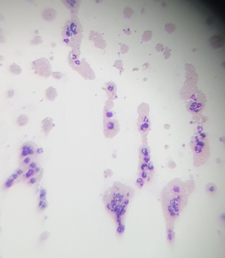 Blood smear revealing reactive thrombocytosis