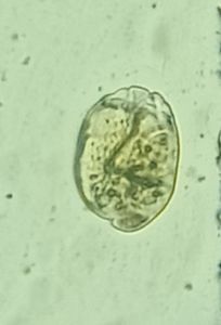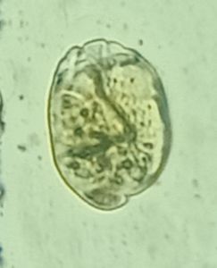 Rumen fluid was collected from a healthy cow. Smear was prepared with one drop of rumen fluid, stained with lugol’s iodine and visualized under foldscope. Protozoa under the genus Polyplastron was identified.
