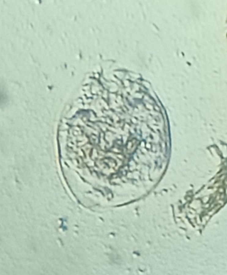 Diplodinium monocanthum was identified using foldscope. Morphology of Diplodinium monocanthum is oval to triangular with posterior