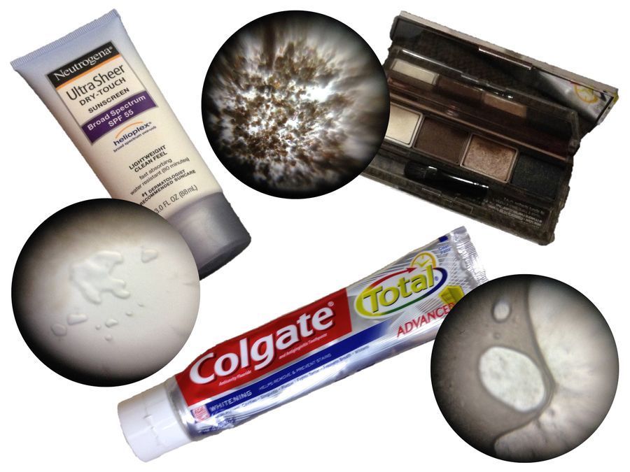 You might know that some of the products you use every day contain ingredients that come from the ocean. From calcifying microorganisms to algae, marine ecology plays a role right in our homes. Carrageenen, for example, is a thickening agent that is extracted from red algae. Products that often contain ocean-borne ingredients are sunscreen, makeup, and toothpaste. Close-up views were seen through a Foldscope and photographed with an iPhone! #foldscope