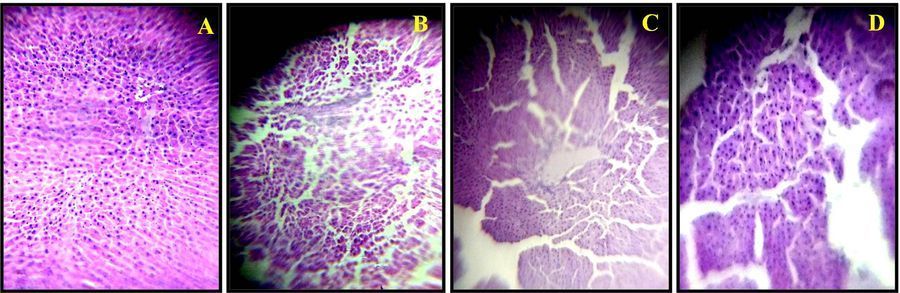 Figure A shows untreated rat liver section with organized liver architecture. Figure B,C & D shows DEN treated rat liver sections. DEN is a potent hepatocarcinogen which helps to produce tumor nodules in liver. The liver architecture in figure B,C & D is disorganized with dilated sinusoids and expanded portal vein and this was more with the increasing dose of DEN. Images taken with foldscope attaching Lenovo K6-Note android cell phone.