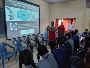 We conduct a awareness program on foldscope assembly at N.S Iyah Memorial Higher secondary school, Ketti Palada, Nilgiri. Students were so eager to view the sample through the foldscope. They were so excited and assembled the foldscope within 10 minutes for surprise.