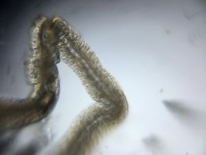 It’s not clear what the flow inside the worm is – is it sucking the water and filter-feeding? Or is it particles inside its gut? The head darting around made it challenging to track. Here’s another video.