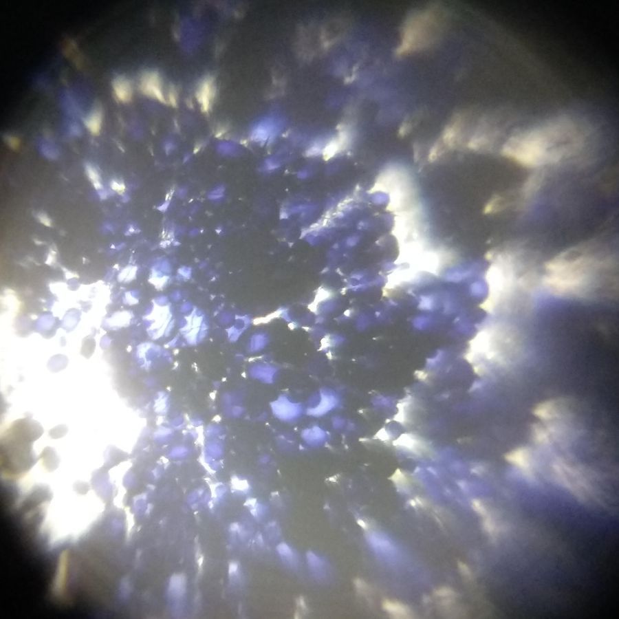 Starch extracted form a cut potato. Dyed using a (medical) iodine solution.
