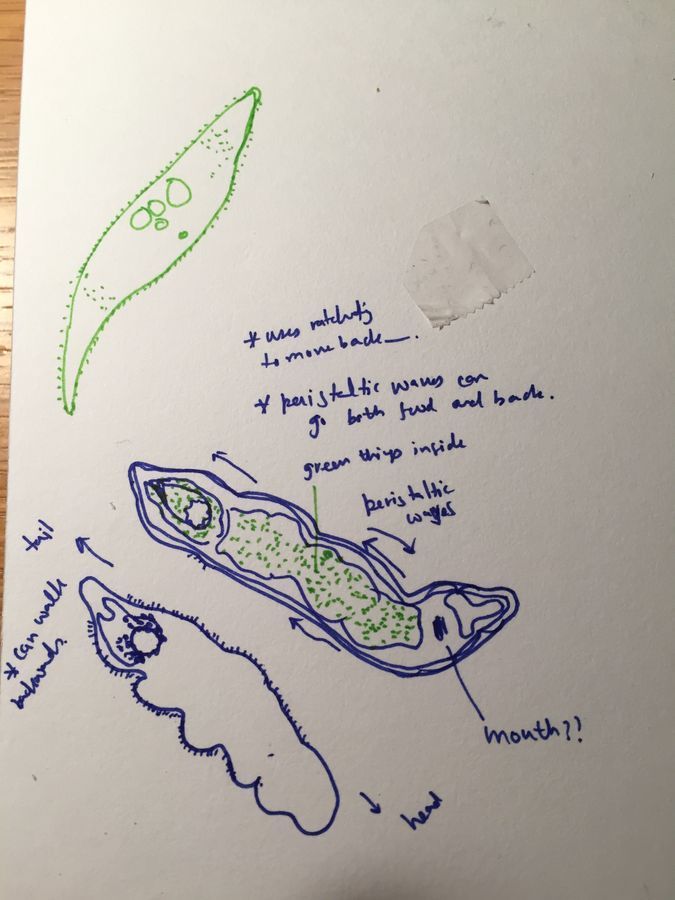 As a comparison; here is a flatworm that I imaged. This video is taken via projection – looking at what I observe. I usually draw right on top of the image.