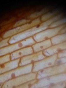 Cells from Inner epidermal peel of a garlic clove observed under Foldscope