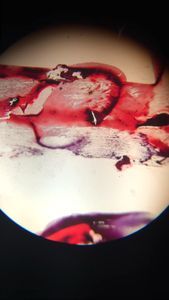 In my first post, someone gave me a great suggestion in the comments and said that I should try to observe biofilms with the Foldscope, so now that I have a better idea of how to use the Foldscope, I decided to give it a shot. I took a sample from the area near the zone of clearance formed on the 2nd plate, made a microscope slide with it, and began exploring! I also tried making observations with my school’s microscope and took photos from both explorations. The 1st photo was taken from the school microscope and the 2nd was taken from the Foldscope.