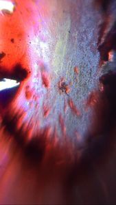 It honestly boggles my mind how a microscope that costs roughly $1 to make provides the observer with a better quality image than a traditional microscope and is more accessible as taking photos and panning around images is significantly easier. On the traditional microscope, you get a clear overall view of the sample, but the Foldscope lets me see that and the smaller details. The small “grains” visible embedded in the purple areas that represent the extracellular biofilm matrix are the P. aeruginosa bacterial cells. More Foldscope Images