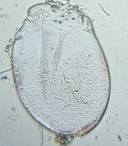 Metadinium banksi protozoa was identified using foldscope. Metadinium banksi is ellipsoidal with a smoothly rounded posterior end and has two converging skeletal plates.