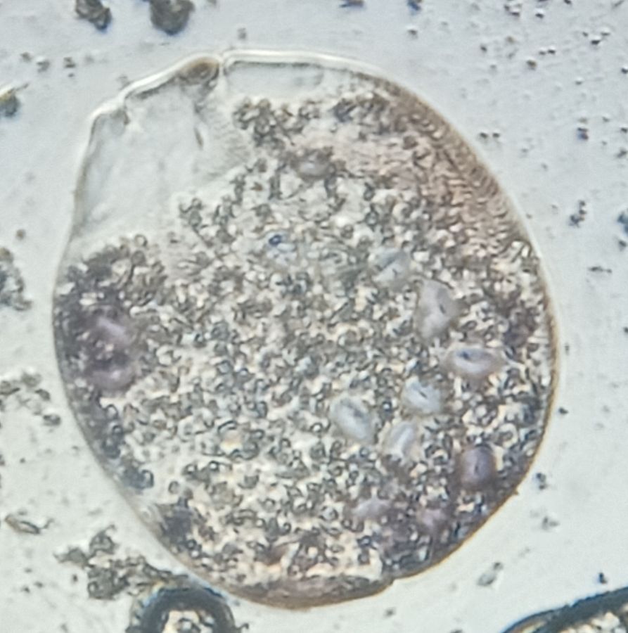 Blepharoconus krugerensis protozoa was identified using foldscope. Blepharoconus krugerensis has a regular shaped ovoid body that is flattened dorso- ventrally. It is found in the rumen of cattle.
