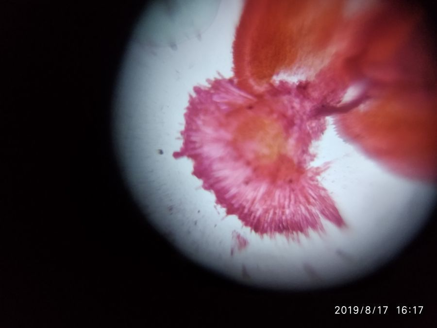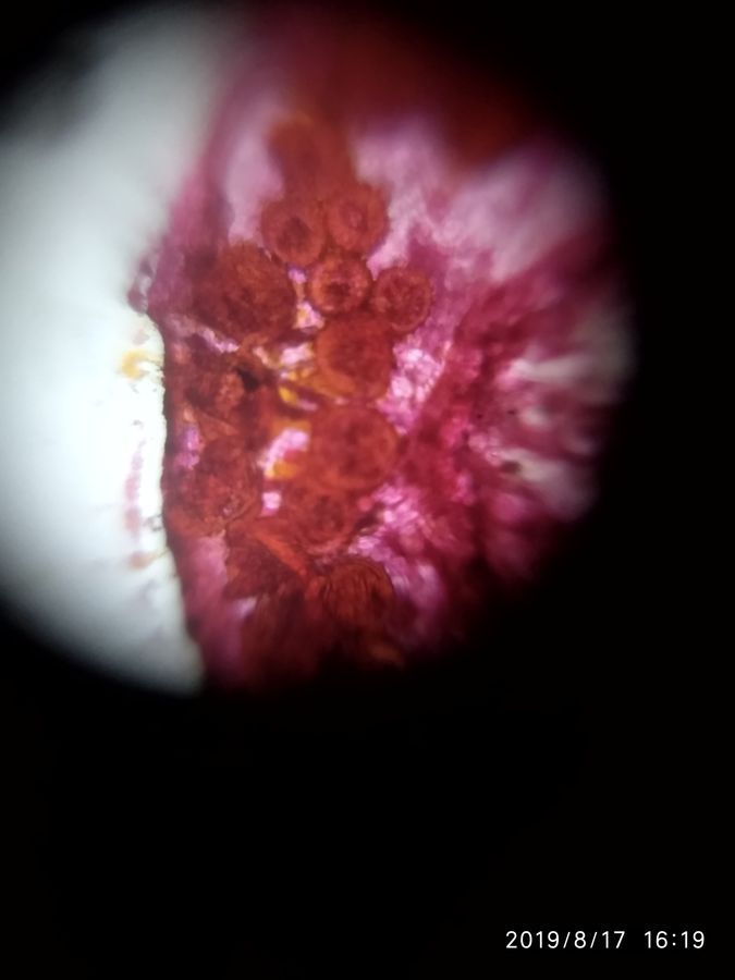 Pollen Grain of Hibiscus by Violoina Pathak We organised an orientation programme first on imaging via Foldscope at Cotton University (CU) among students and they were then asked to come with their ideas. Students used to visit Foldscope lab of CU for about 10 days with the subject materials and me along with my scholar assisted them with materials like slide, stains etc. to get a picture in their smartphones. Enthusiast students submitted their entries as per rules made by panel and all of them were awarded to encourage their participation. Three best entries were selected and awarded as winner, 1st and 2nd runner-up during workshop entitled ‘ichthyotaxonomy with the aid of Foldscope’ on 21-22 August, 2019. Here, with some snaps of the programme and the pictures taken by the students utilising Foldscope.
