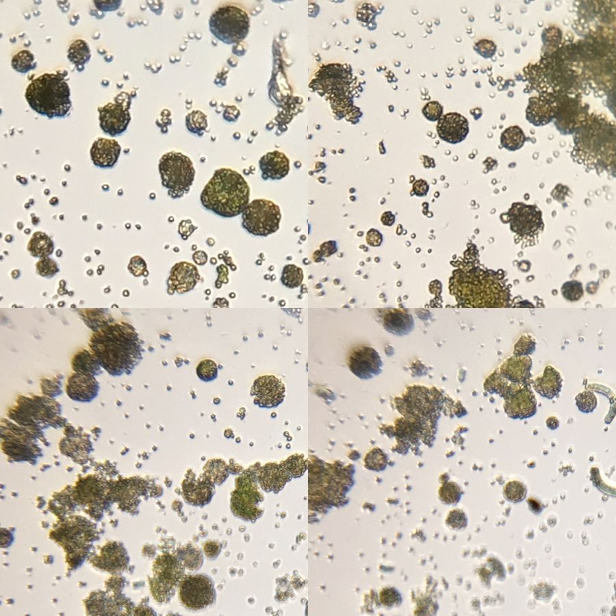 The Chlorella looks like the genus Chlorella ! I’m not sure as to which species it is. The single cell green algae does normally clump together into balls as seen in the images.