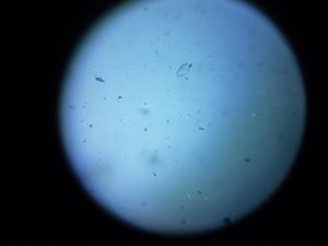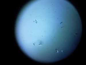 Transparent different unknown structures and crystal like structures were observed with the help of Foldscope. Sample 44.
