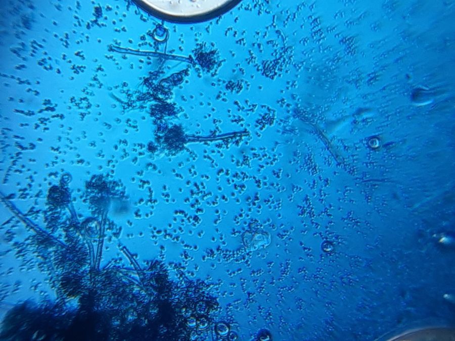 Penicillium sp Cladosporium sp, Aspergillus sp and Penicillium sp were isolated from Shillong drinking water sample and observed under Foldscope. Sample 8.