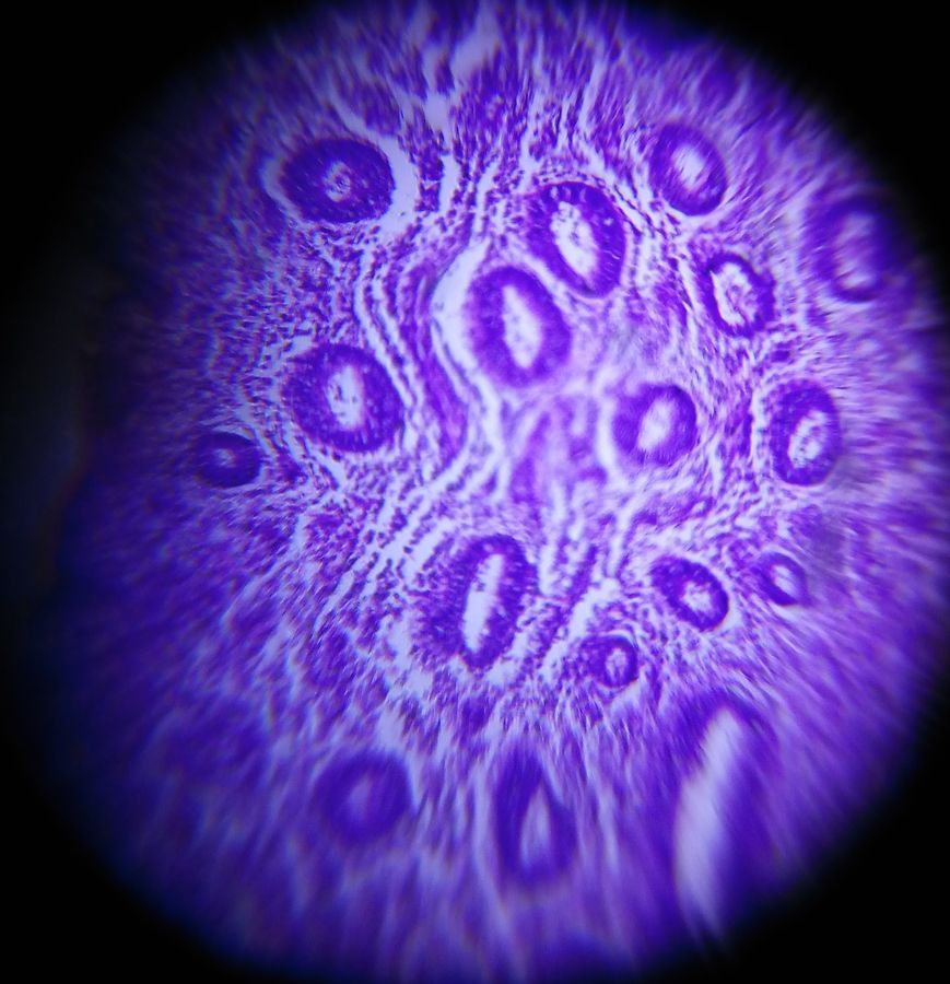 Section from endometrium showing round tubular glands and surrounding stoma: Proliferative phase