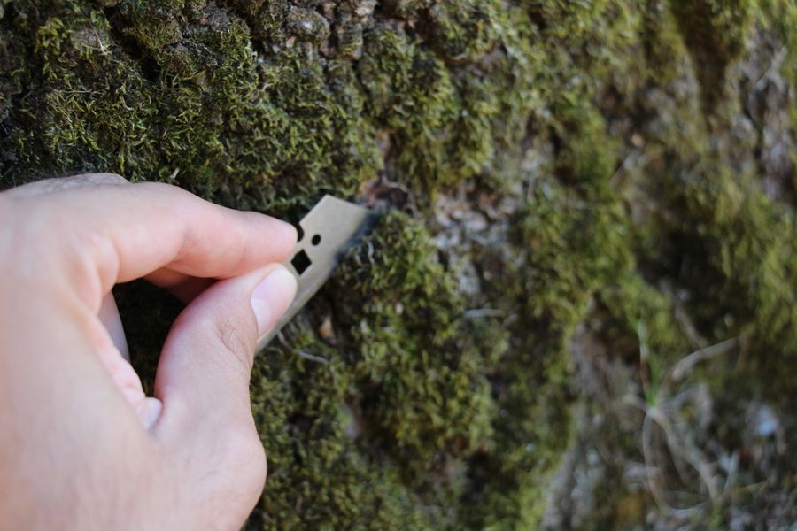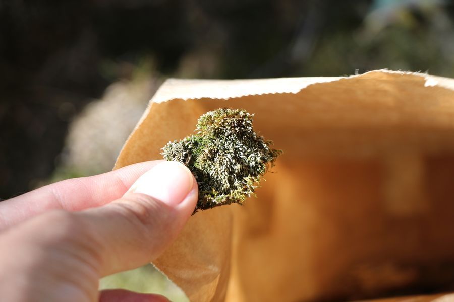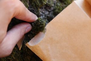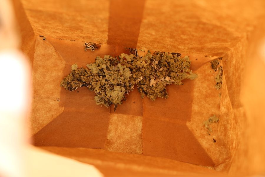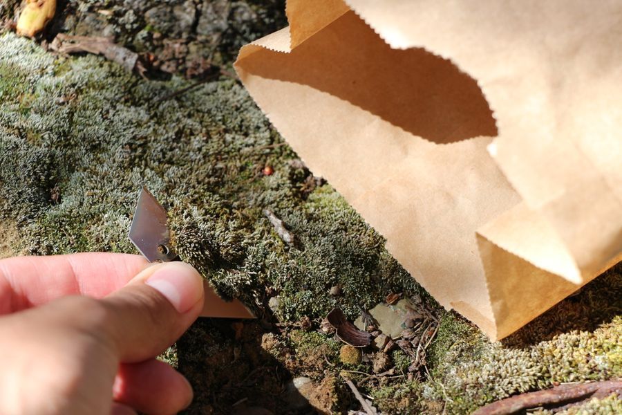 I scraped chunks of the moss from the tree using my razor blade and placed them in a new paper bag.