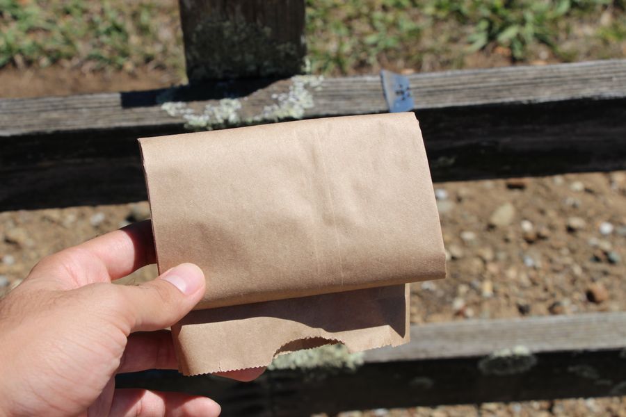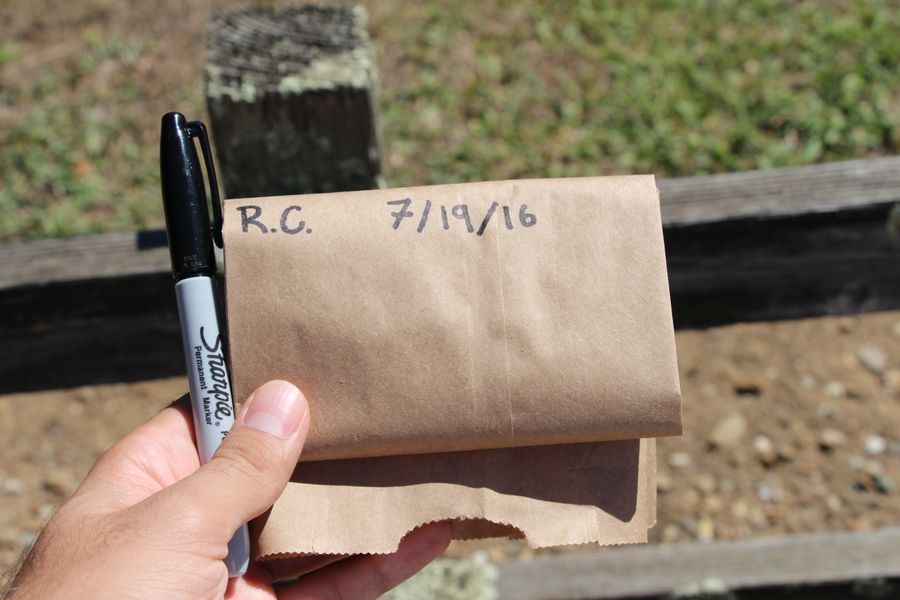 I close the bag, and fold it such that I have space to write down information about my sample.