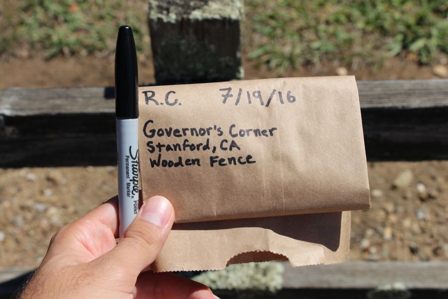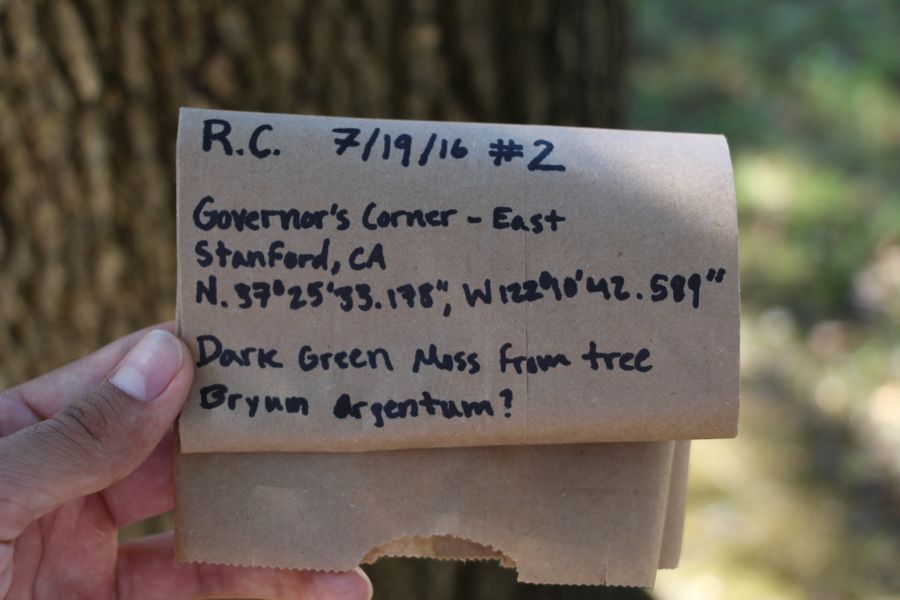 I next write a description of the location that I took the sample from. For instance, my sample was taken from a wooden fence at the Governor’s Corner dormitories at Stanford University in California.