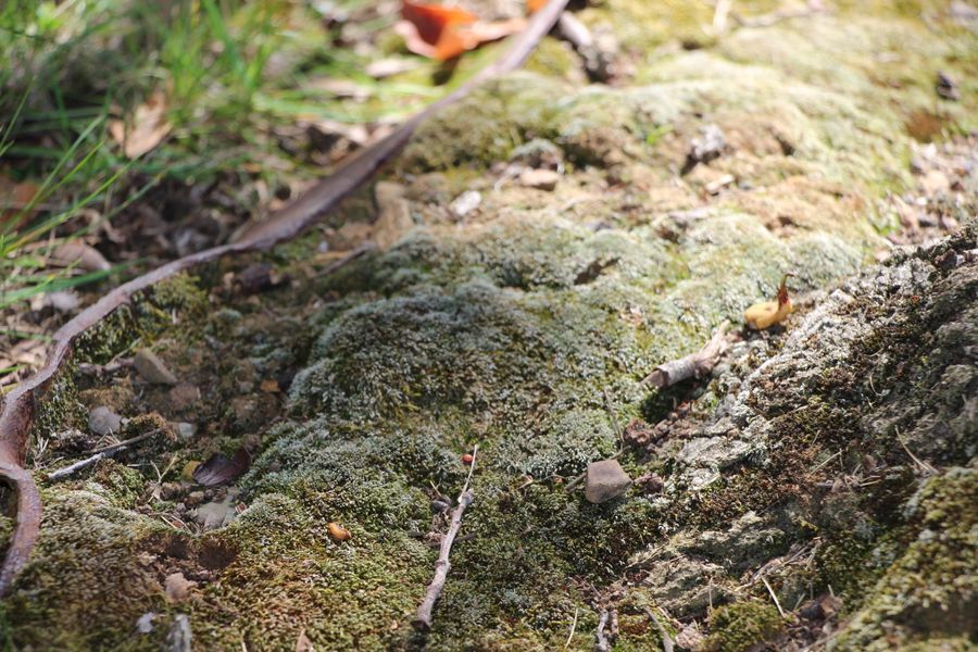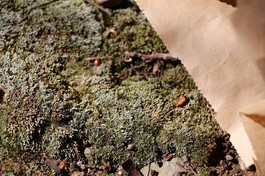 After placing this moss in the paper bag, I next moved to the moss growing on the dirt around the tree.